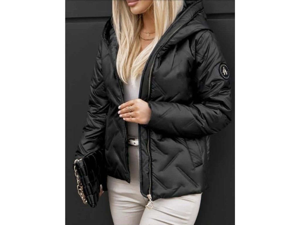 - kratší bunda do pasu s kapucí, zlatý zip a ozdobná nášivka na rukávu