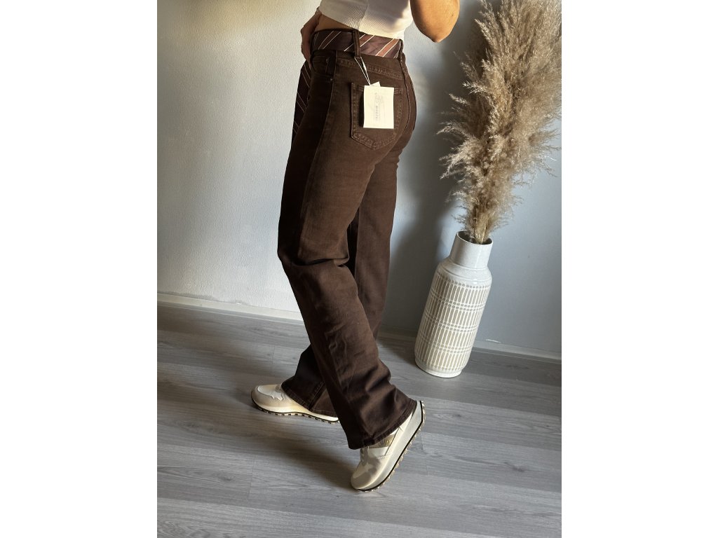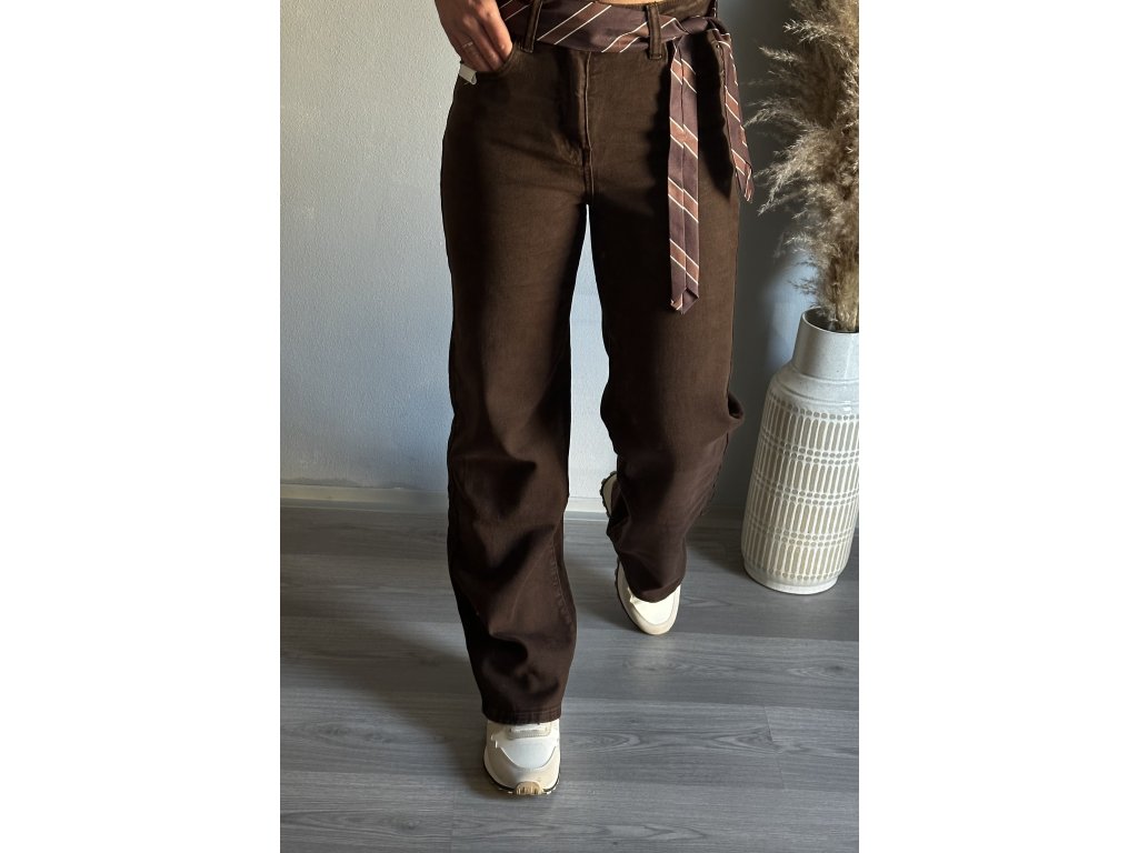 - stylové čokoládově hnědé džíny, široké tak jak to máme rádi, v pase ozdobný šátek, lze sundat