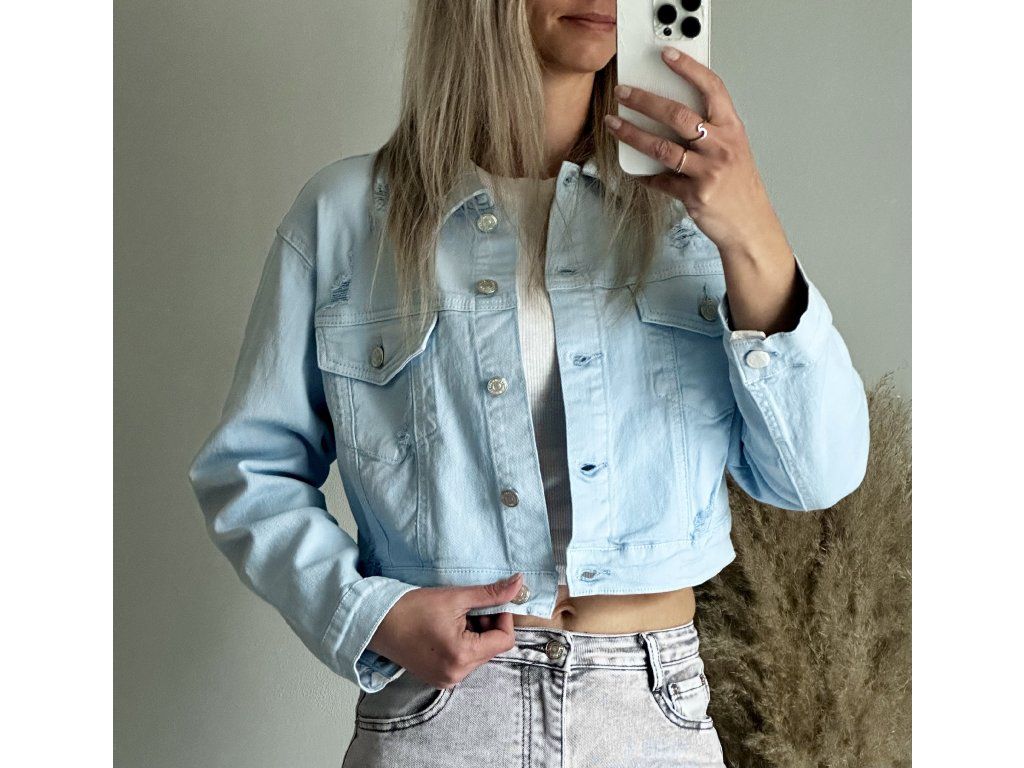 - oversize džíska v pastelové modré barvě, do pasu