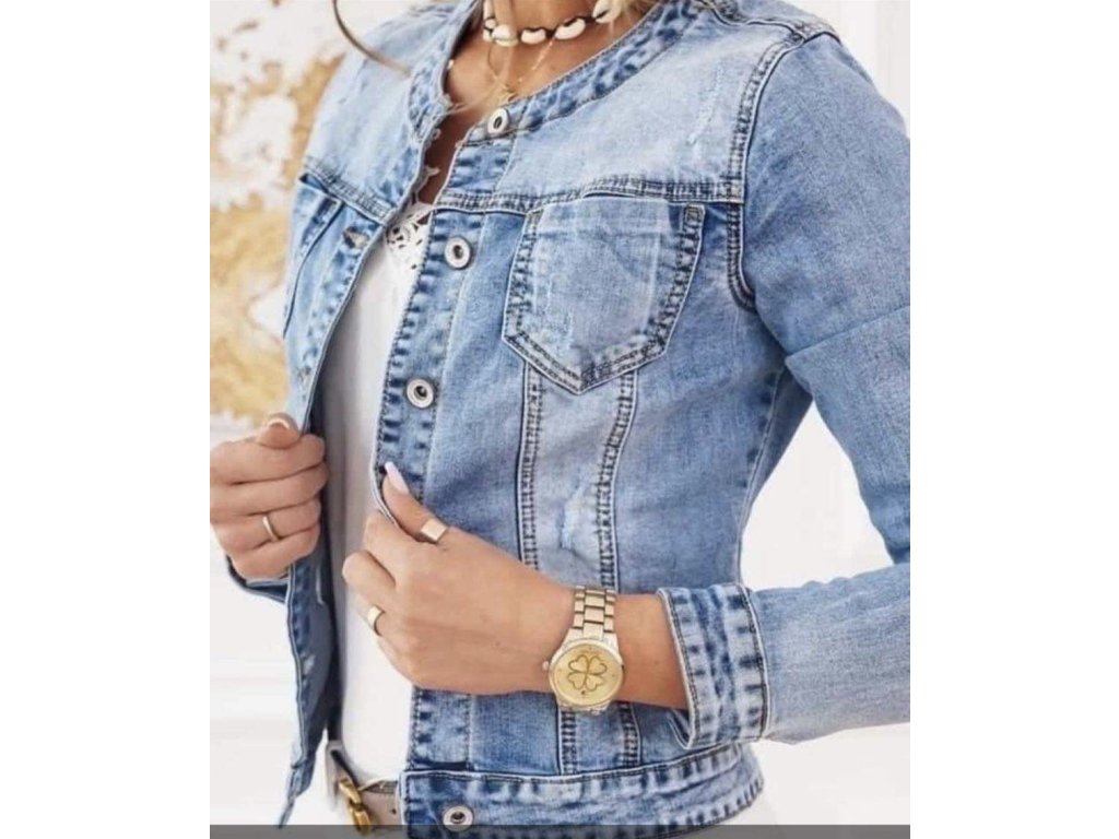 - krátká, netrhaná, džínová bunda bez límce