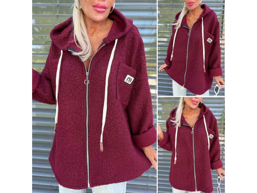 - kratší kabátek bez podšívky, kapsičky na prsou, s kapucí