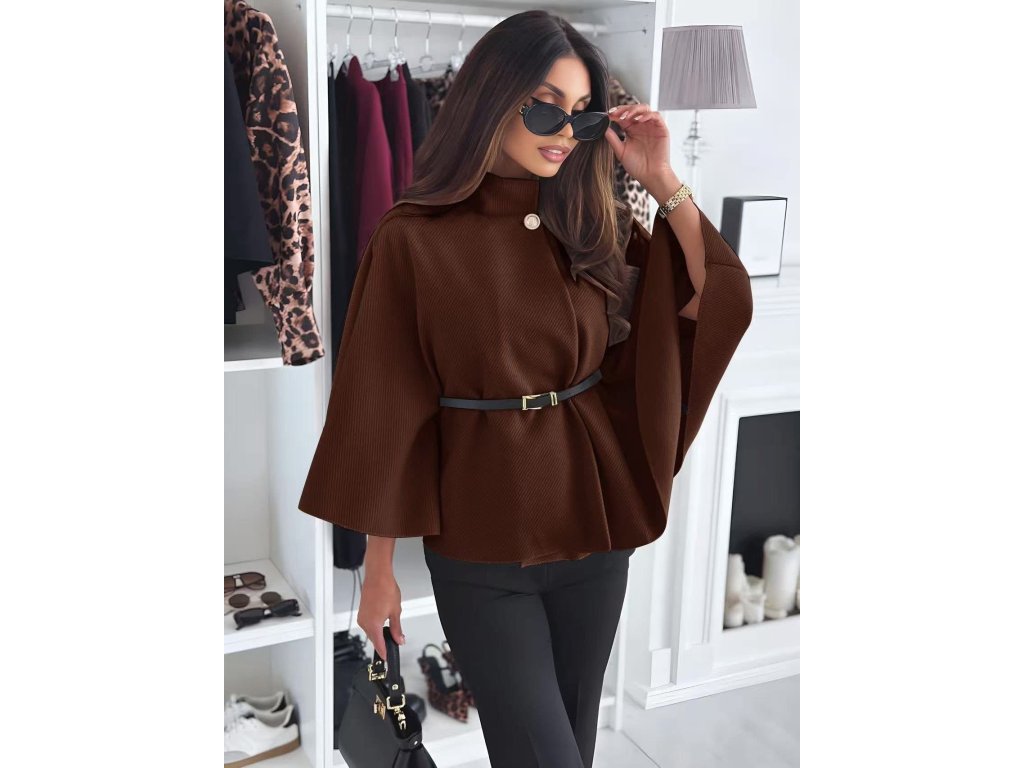 - elegantní pončo se stojáčkem, zapínání na knoflík a pásek