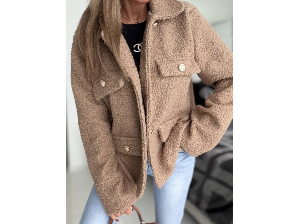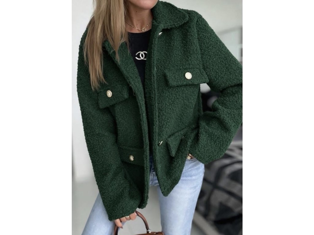 - elegantní flaušový kabátek, do pasu, vhodný k širokým kalhotám