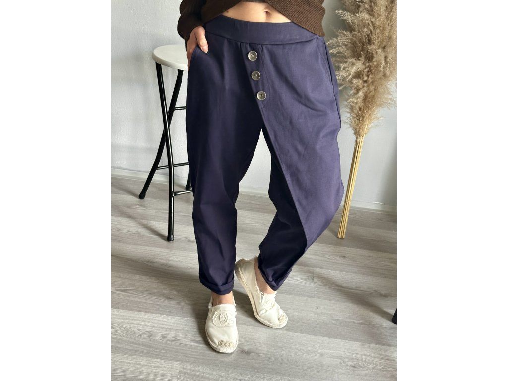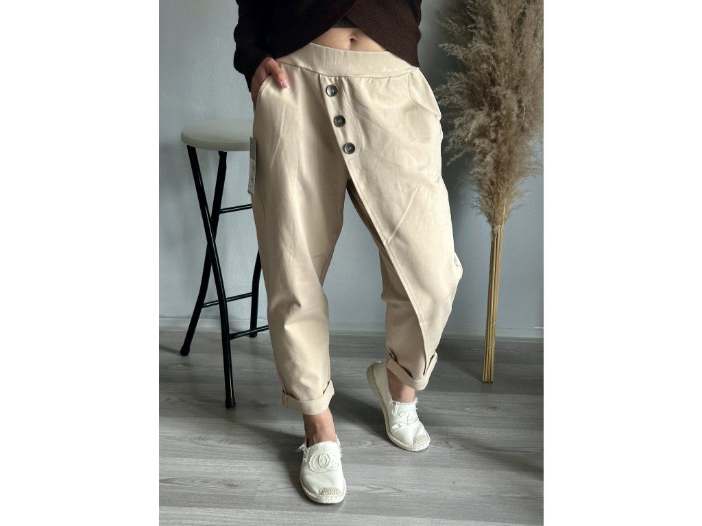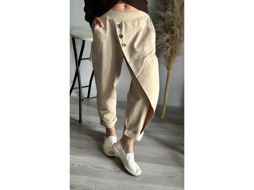 - extravagantní kalhoty s knoflíky, v pase guma, z boku kapsy