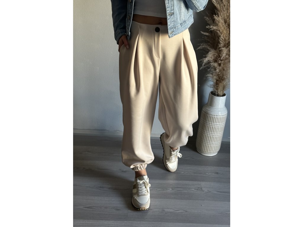 - tak tyhle sportovně elegantní kalhoty budeš milovat, v pase na gumu, vzadu bez kapes, konce nohavic do gumy