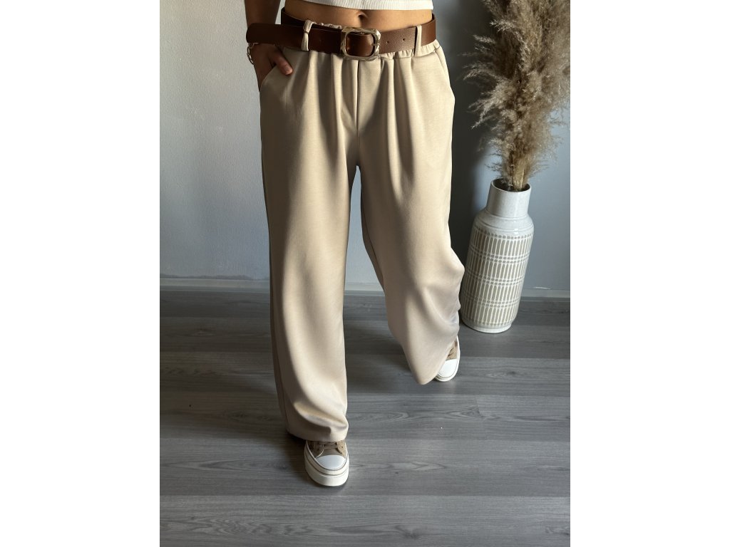 - elegantní široké kalhoty z máslového materiálu, pásek součástí
