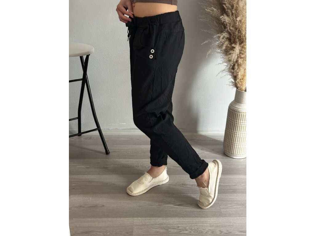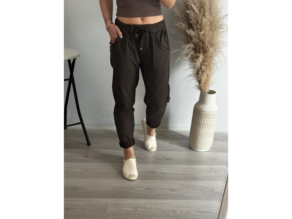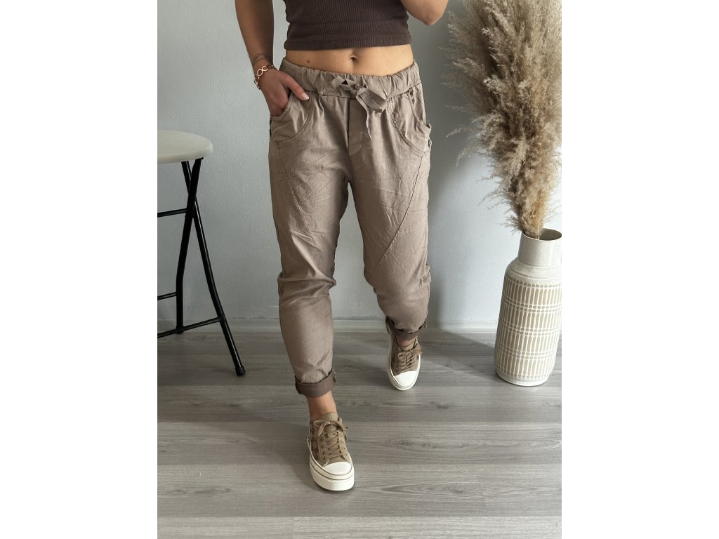 - oblíbené kalhoty, mačkáče, v pase pružná guma, hodně elastické