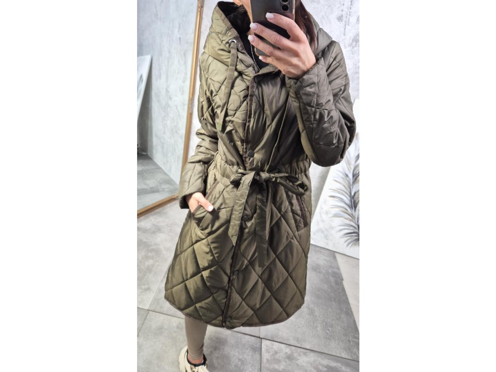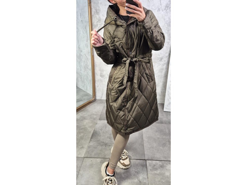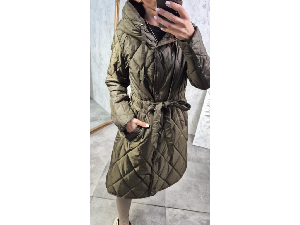 - přechodový kabátek v khaki barvě, na zavazování