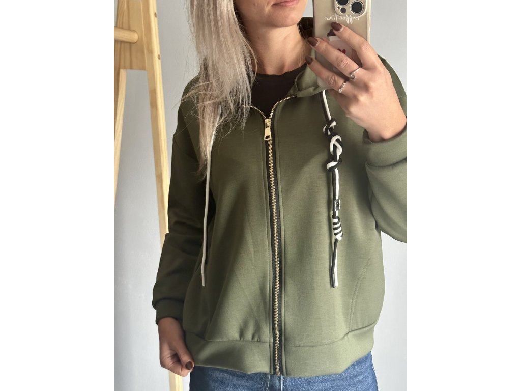 - kratší mikina na zip s kapucí, z boku kapsy