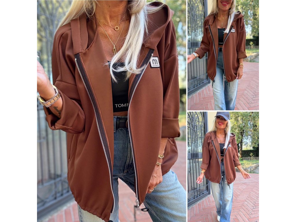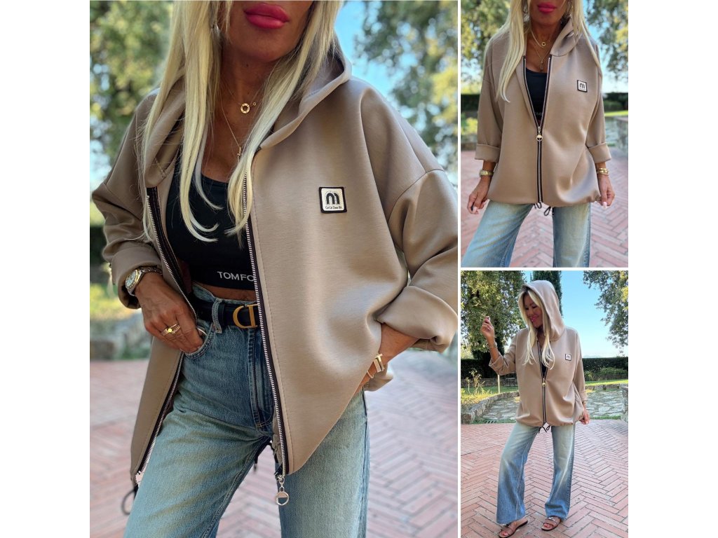- mikina na zip s kapucí, z boku kapsy, spodní lem na stažení