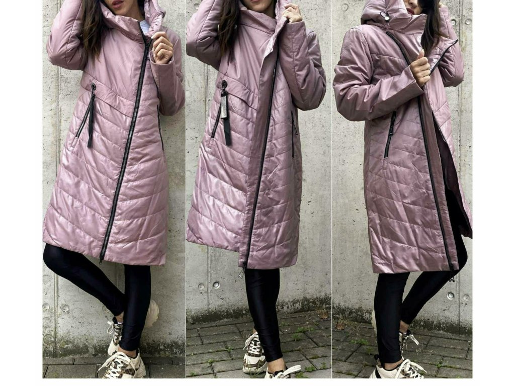 - slabá parka s šikmo našitým zipem a ozdobným prošíváním
