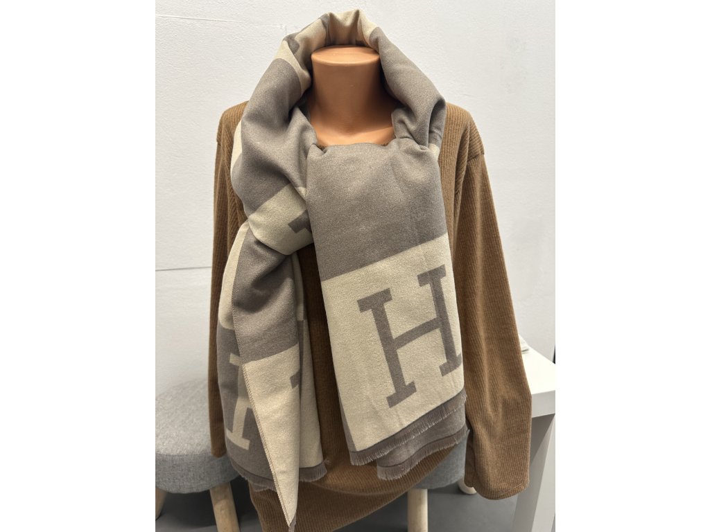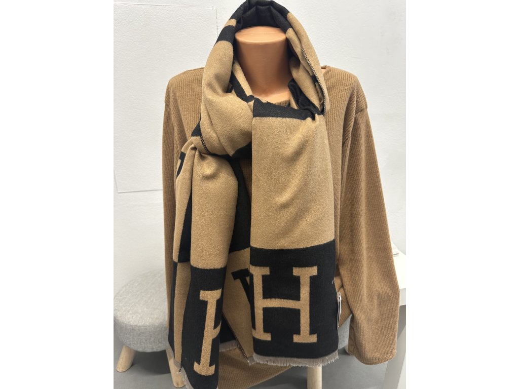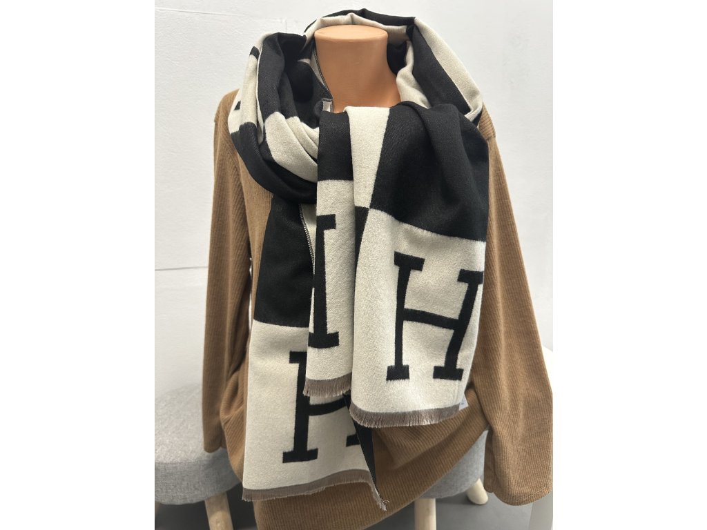 - dlouhá šála se vzorem, konce roztřepené