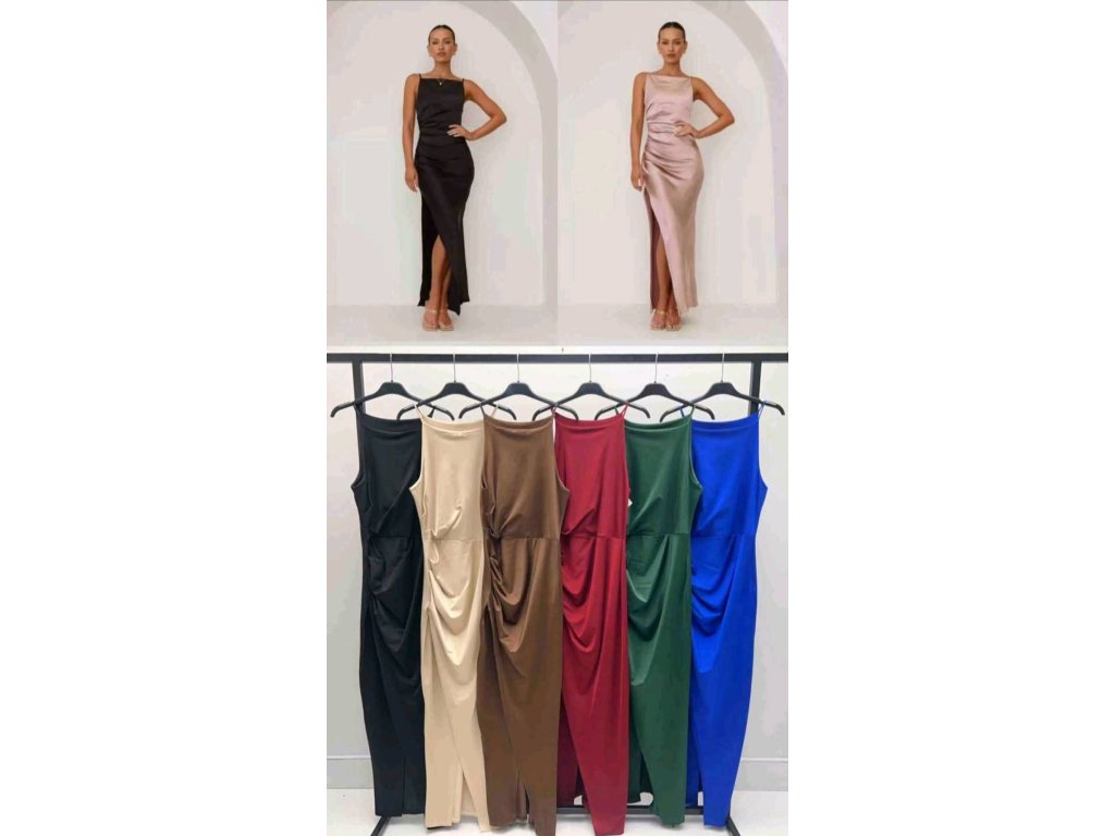 - elastické dlouhé šaty s rozparkem, na úzká ramínka, z boku mírně stažené