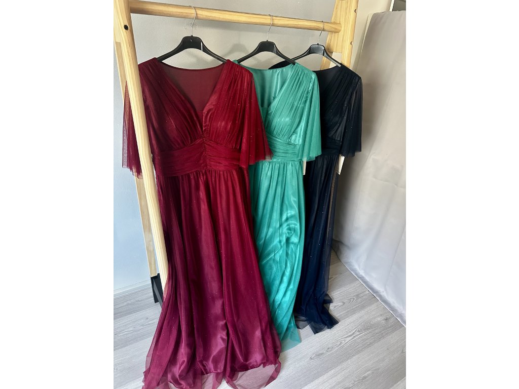 -dlouhé, společenské, šifónové šaty s rukávkem a spodničkou, na prsou vycpávky