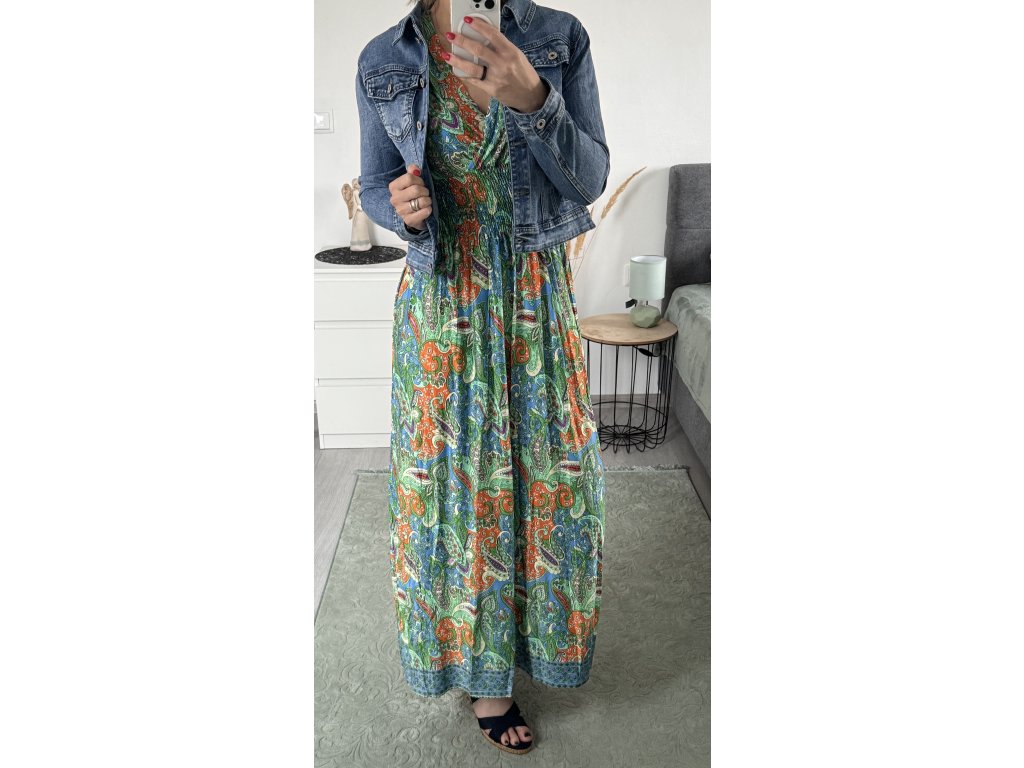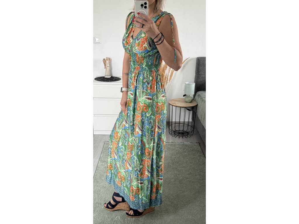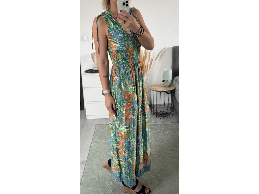 - příjemné, dlouhé šaty na širší ramínka, pod prsy žabičkování
