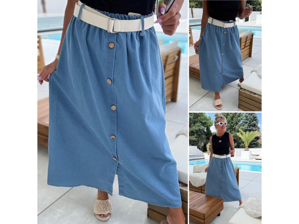 - lehčí džínová sukně, s páskem, falešné knoflíky