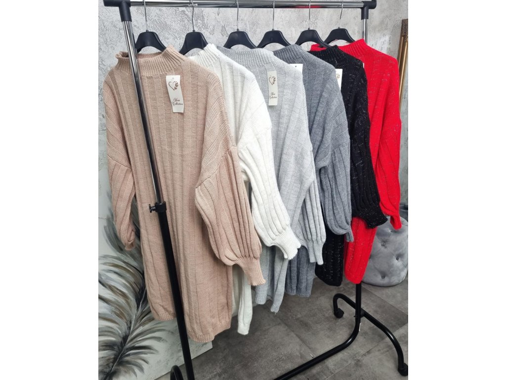 - dlouhý svetr se stojáčkem, balonové rukávy