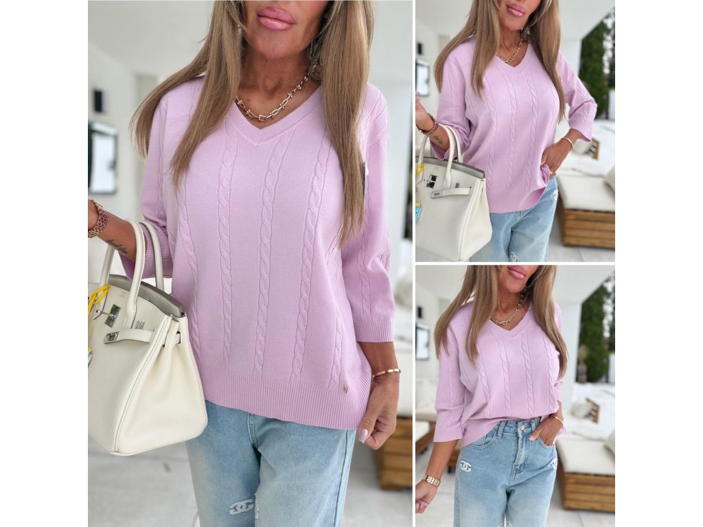 - slabší svetřík se vzorem, výstřih do V, 3/4 rukáv