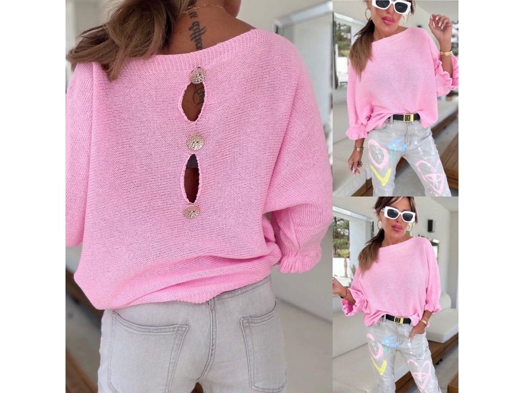 - oversize svetr s ozdobnými knoflíčky vzadu