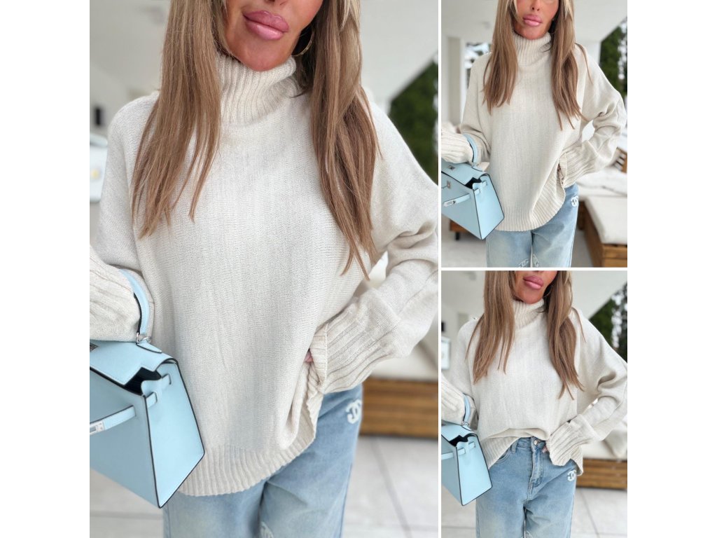 - svetr se stojáčkem protkaný stříbrnou nitkou