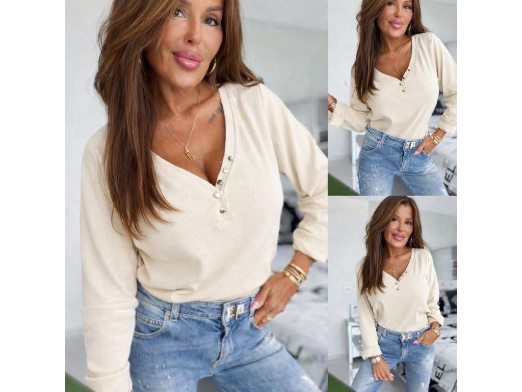 - slabší triko s dlouhým rukávem, s ozdobnými knoflíčky