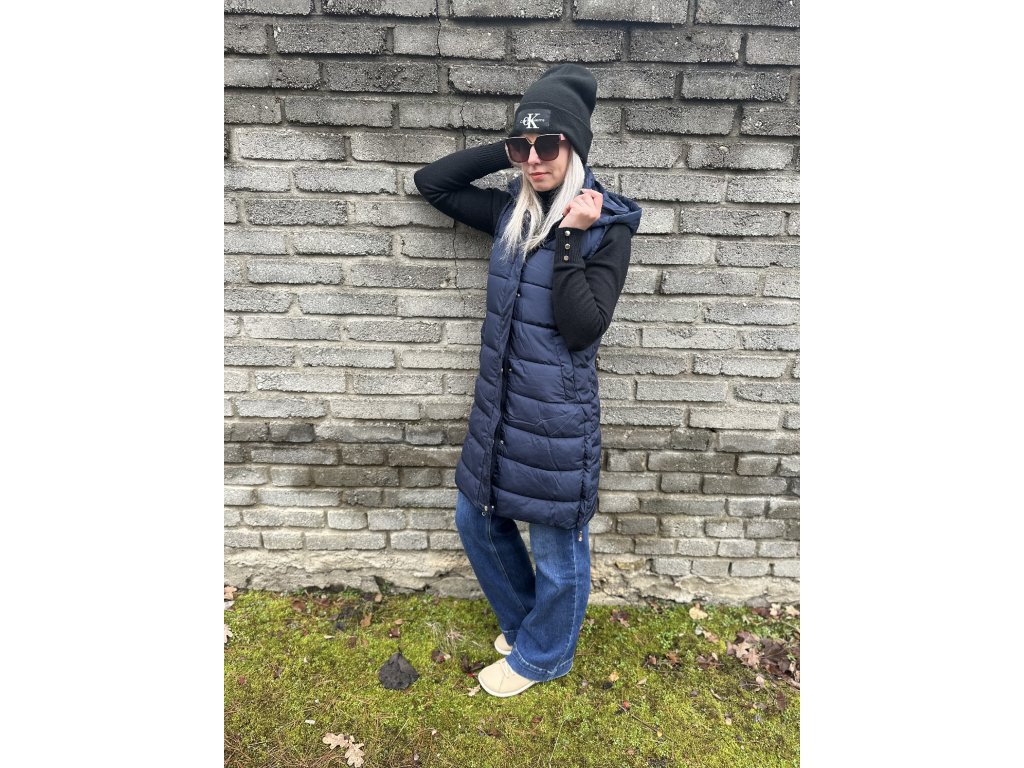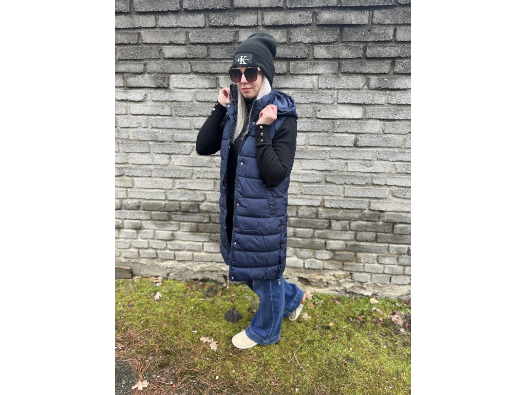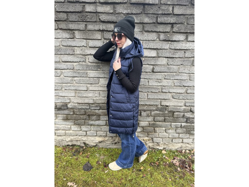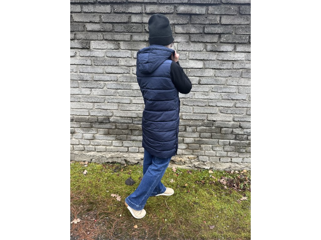 - teplá, prošívaná vesta s kapucí, z boku rozparky na zip, vpředu kapsy
